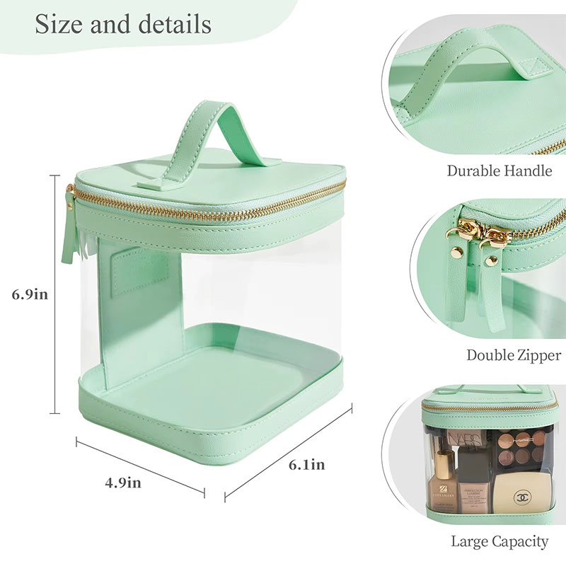 Прозрачный ПВХ-материал: прозрачная упаковка высокой плотности, четко демонстрирующая находящиеся внутри косметические средства (например, жидкую основу NARS, палитру теней для век 3CE), с матовой металлической молнией, устойчивая к царапинам и старению.