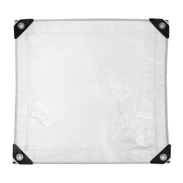 Весь периметр усилен термопрессованными швами, внутри которых вшит прочный полипропиленовый канат — это обеспечивает высокую устойчивость к разрывам. Углы дополнительно армированы пластиковыми накладками и мощными ржавчинами устойчивыми металлическими громметами для надежного закрепления. Данная тентная ткань идеально подходит для устройства временных чистых помещений, как защитное полотно при ремонте, фон для фотосъемки, а также для любых общих целей, где требуется светорассеивающее и чистое покрытие.