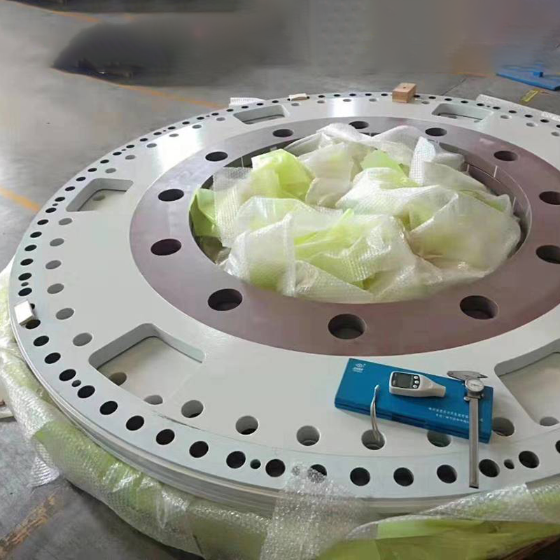 Как правило, подразделяется на морской ветроэнергетики, наземных ветроэнергетики, большинство его материал легированной стали, материал имеет высокую прочность, хорошую вязкость, износостойкость и коррозионную стойкость, его материал в основном Q345E 42CrMo и т.д., может адаптироваться к суровым условиям работы и высокие требования нагрузки, обычно используется в крупных, высокопроизводительных ветровых турбин. Это через муфту промежуточного цилиндра фланец в форме алмаза, четыре угла болта гайки в сборе и тормозной диск фиксируется, болт через болтовую втулку и тормозной диск монтажные отверстия в свою очередь, проставка в болтовой втулке и тормозной диск на правой стороне контакта, диафрагма через проставку и болтовую втулку между гайкой фиксируется в конце болта. Гидравлический суппорт гидравлического тормоза находится рядом с обеими сторонами тормозного диска для создания трения и достижения торможения. В случае остановки ветряной турбины или аварийной ситуации он эффективно останавливает вращение ветроколеса и обеспечивает безопасную и стабильную работу установки. Он имеет сильную износостойкость, частое торможение, необходимо противостоять трению тормозных колодок, уменьшить износ, например, использовать специальные износостойкие материалы сплава или обработки поверхности для повышения износостойкости. Он обладает высокой прочностью, чтобы выдержать огромный крутящий момент, создаваемый вращением ветряной турбины, и силу удара при торможении, чтобы обеспечить структурную целостность и надежное соединение.