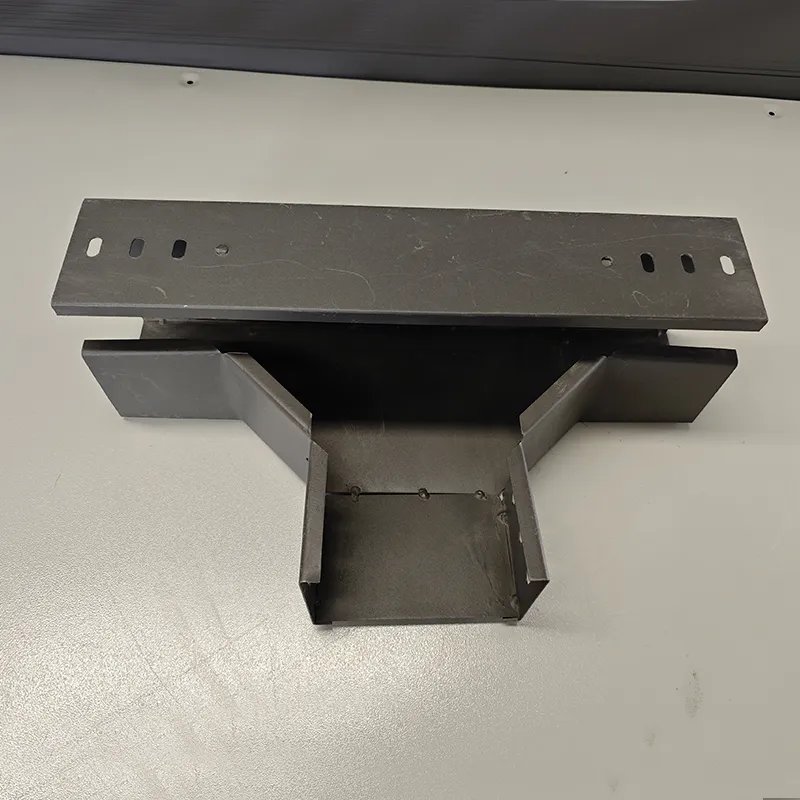 Тройник вертикальный нисходящий для кабельных лотков — это соединительный элемент, используемый в системах кабельных лотков для вертикальной прокладки кабелей. Он предназначен для перехода кабеля с горизонтального лотка на вертикальный или спуска к оборудованию. Конструкция состоит из трёх портов (отверстий) и вертикального канала: один порт расположен сверху, а два других — снизу, что обеспечивает поддержку и фиксацию кабелей. Изготавливается преимущественно из оцинкованной стали или нержавеющей стали для обеспечения коррозионной стойкости и долговременной стабильности.