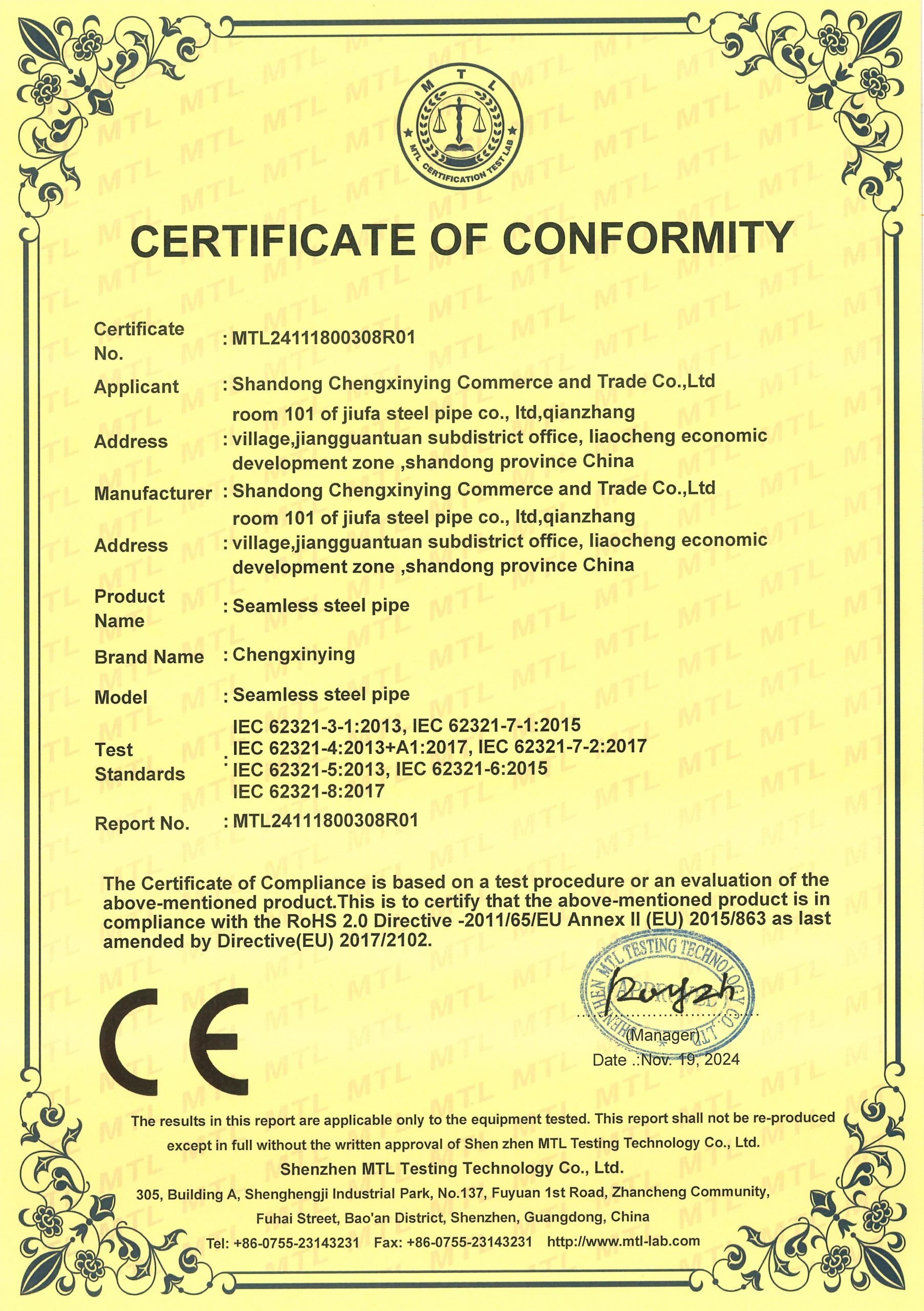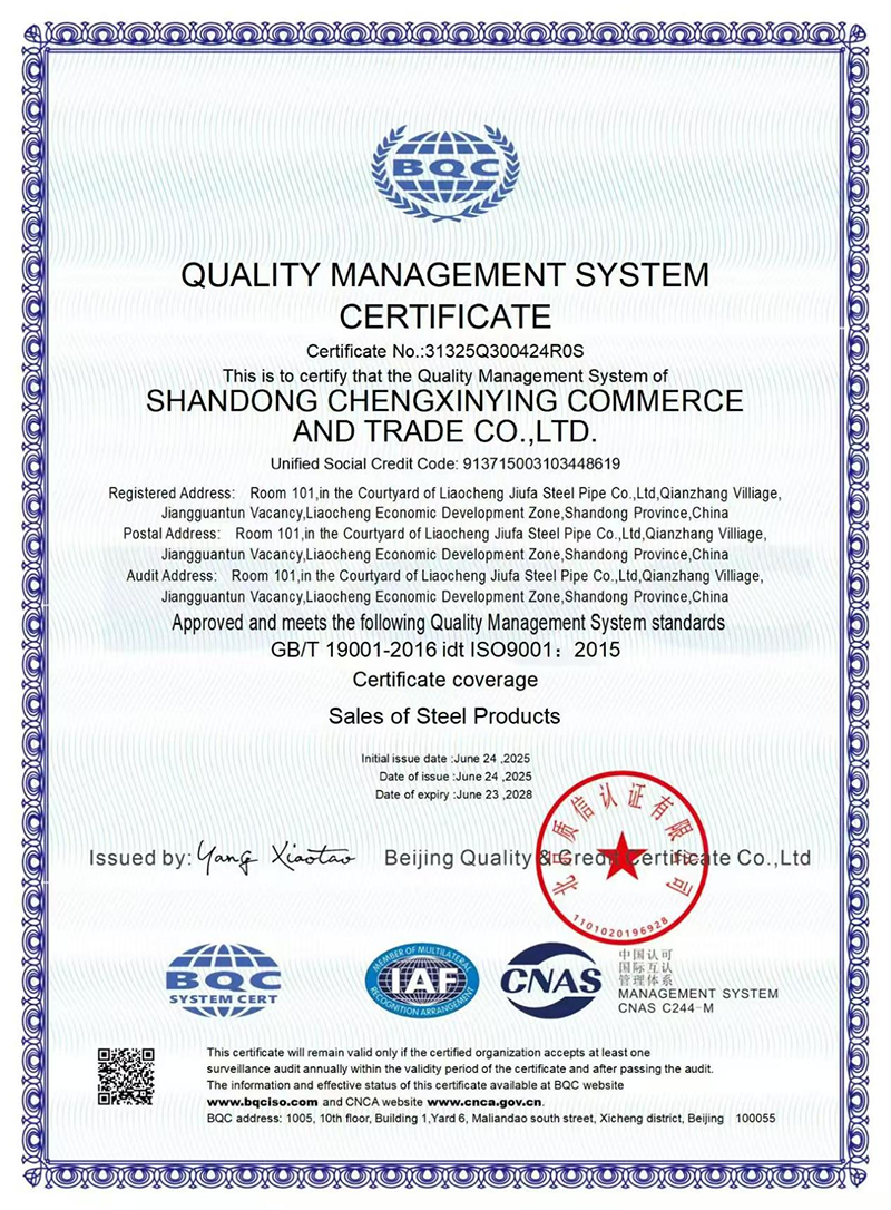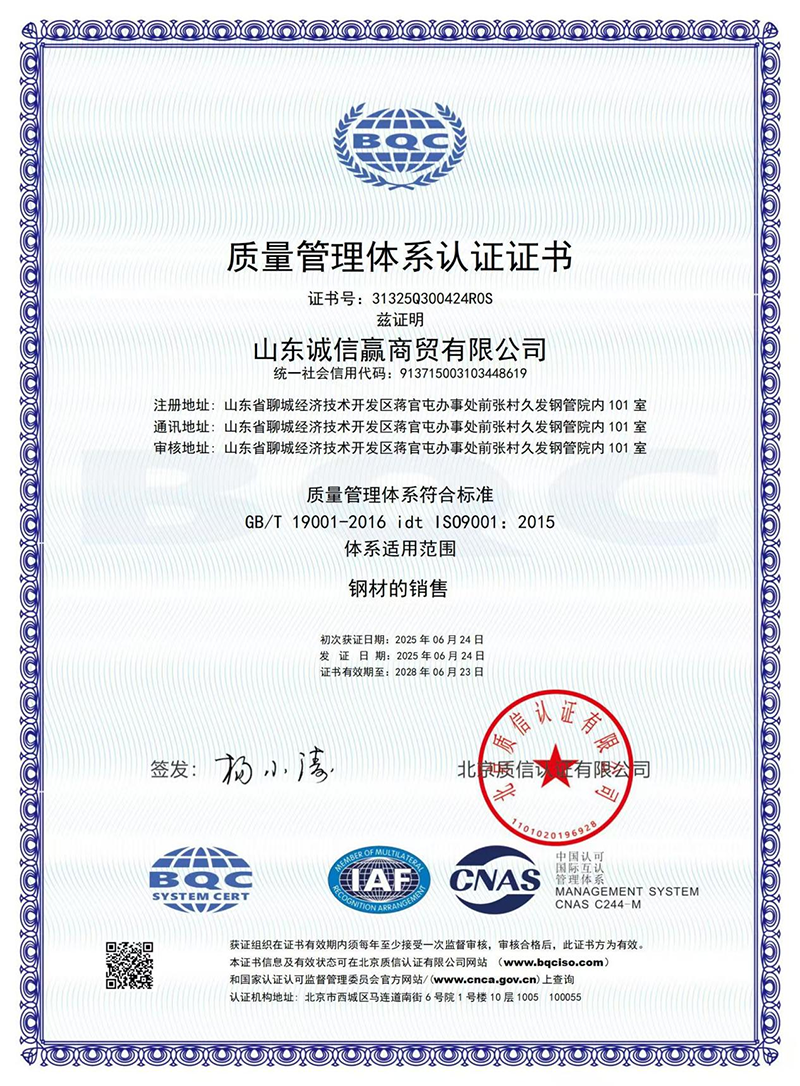 Последующая обработка: гашение в растворе дихромата натрия для пассивации, за которым следует гидростатическое испытание (1,5 × рабочее давление) и проверка вихревого тока на дефекты.