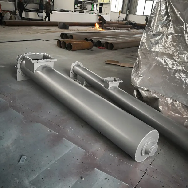 Винтовой Конвейер, также известные как шнеки, представляют собой механические устройства, в которых электродвигатель приводит в движение вращающийся шнек, тем самым проталкивая материалы для их транспортировки. Они могут транспортировать материалы по горизонтали, по наклонной или по вертикали, предлагая такие преимущества, как простая конструкция, небольшая площадь поперечного сечения, отличные уплотнительные свойства, удобство в эксплуатации, простота обслуживания и пригодность для закрытой транспортировки. Шнековые конвейеры подразделяются на два типа в зависимости от формы транспортировки: шнековые конвейеры с валом и шнековые конвейеры без вала. По внешней конфигурации они классифицируются как U-образные шнековые конвейеры и трубчатые шнековые конвейеры. Шнековые конвейеры с валом подходят для неклейких сухих порошкообразных материалов и мелких гранулированных материалов (например, цемента, летучей золы, извести, зерна и т. д.), в то время как шнековые конвейеры без вала подходят для транспортировки клейких и легко запутывающихся материалов.