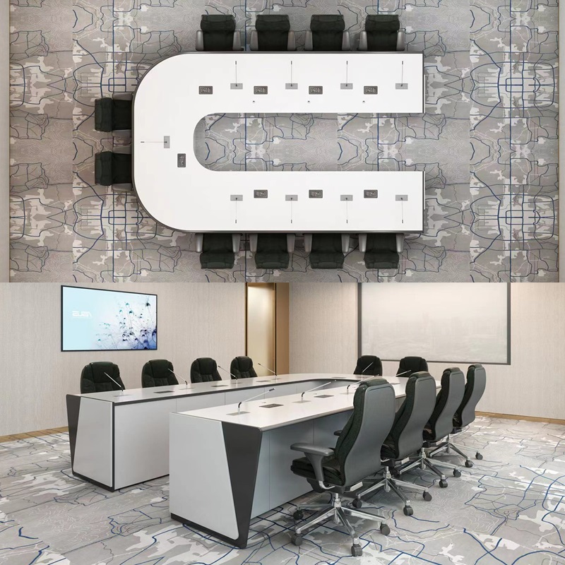5.Стиль конференц - стола соответствует стилю отделки, консоли и дополняет друг друга, чтобы обеспечить общее единство и чистоту. Предлагается несколько цветовых вариантов для удовлетворения потребностей в сочетании различных сцен. Размещение различных кабелей и розеток для улучшения общего имиджа комнаты, повышения эффективности работы, снижения затрат времени и так далее.