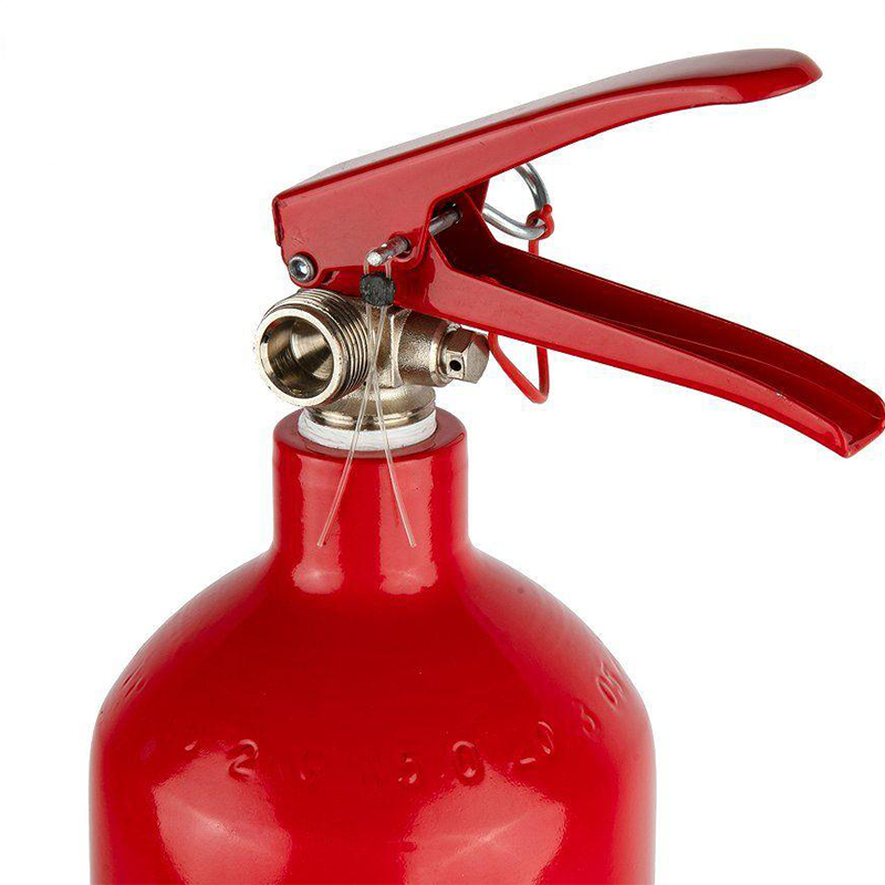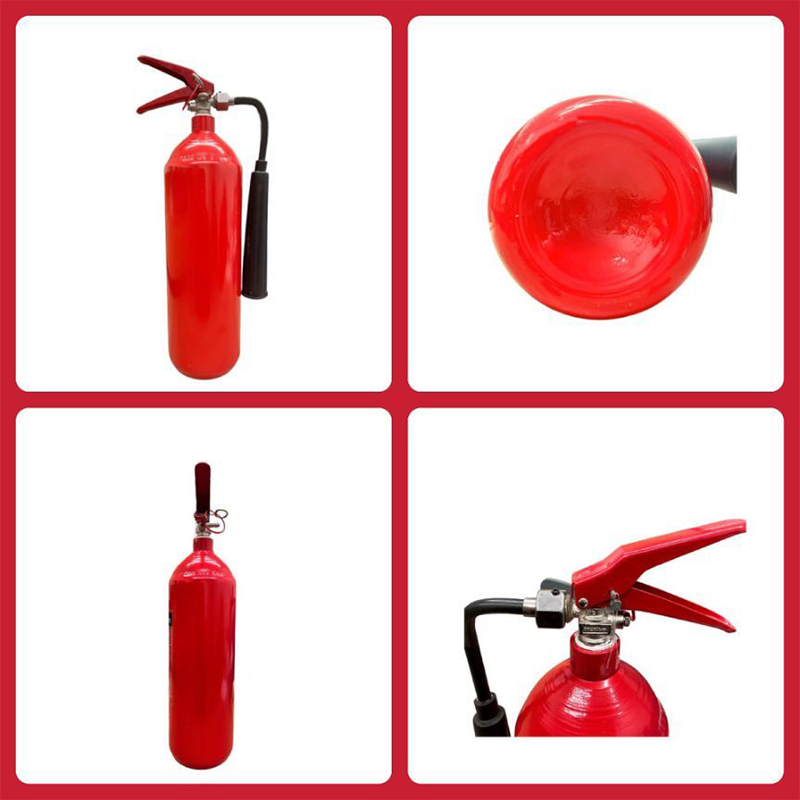 Жидкий углекислый газ хранится в баллоне огнетушителя. При работе нажмите на рукоятку клапана баллона. Внутреннее углекислотное огнетушащее вещество распыляется из сифонной трубки в сопло через клапан баллона, в результате чего концентрация кислорода в зоне горения быстро падает. Когда углекислый газ достигнет достаточной концентрации, пламя задохнется и погаснет. Он поглощает большое количество тепла в течение определенного периода времени, поэтому оказывает определенное охлаждающее действие на горящий материал, а также помогает потушить огонь. Углекислотные огнетушители заполнены жидким углекислым газом, который распыляется для тушения огня, он состоит из газового баллона, клапана баллона, системы впрыска и других частей.