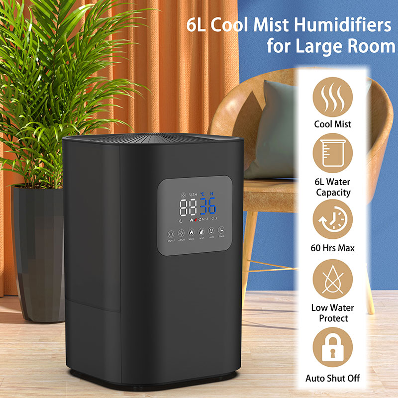Сверхбольшой объем бака для воды: бак для воды объемом 6 л, длительное увлажнение, снижение частоты добавления воды.