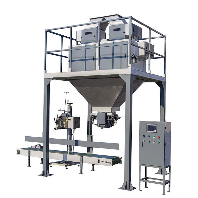 В начале работы материалы подаются в дозатор A/B раздельно с помощью механизма подачи. Когда вес материала почти приближается к заданному целевому значению, он разделяется на небольшие порции для обеспечения точности измерения. Когда заданное значение при достижении этой цели механизм подачи закрывается, и количественное измерение в дозирующем барабане A/B завершается.Если дозатор B завершает дозирование первым, система открывает выпускной клапан в нижней части дозатора B и транспортирует материал на склад, расположенный ниже. После завершения дозатор B снова начинает подавать и измерять материал.После завершения процесса зажима мешка материалы на промежуточном складе самотеком вытекают из упаковочного мешка. После завершения процесса материалы из дозирующего ведра A, которые были отмерены, снова поступают на промежуточный склад.Таким образом, материалы из дозирующего барабана A и дозирующего барабана B поочередно поступают на упаковочный склад, что значительно повышает скорость упаковки.