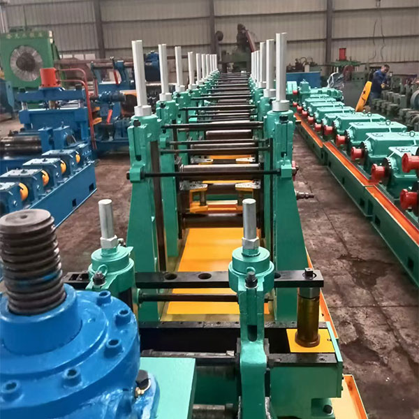 3. Устройство для формовки и сварки: включает в себя секцию формовки и секцию сварки. Секция формовки имеет несколько горизонтальных роликовых рам и вертикальных роликовых рам. Стальная полоса постепенно изгибается и формируется комбинированными роликами для формирования заготовки квадратной трубы. Сварочная часть обычно использует технологию высокочастотной сварки, используя высокочастотный ток для быстрого нагрева и расплавления краев заготовки трубы и сварки их вместе.