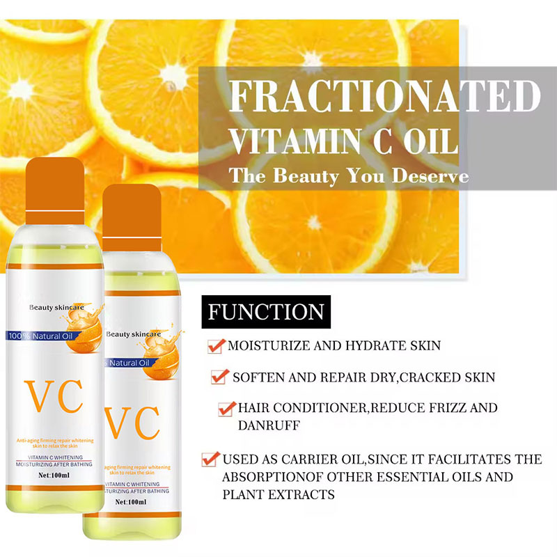 VC Эфирное масло для массажа - это косметическое масло с жирорастворимыми производными VC (такими как тетрагексилдеканол аскорбат) в качестве основы, которое может одновременно оказывать антиоксидантное действие, осветлять следы от акне и стимулировать регенерацию коллагена, разогревая и способствуя проникновению через массаж, и особенно подходит для поздней ночной кожи и послемедицинского восстановления.