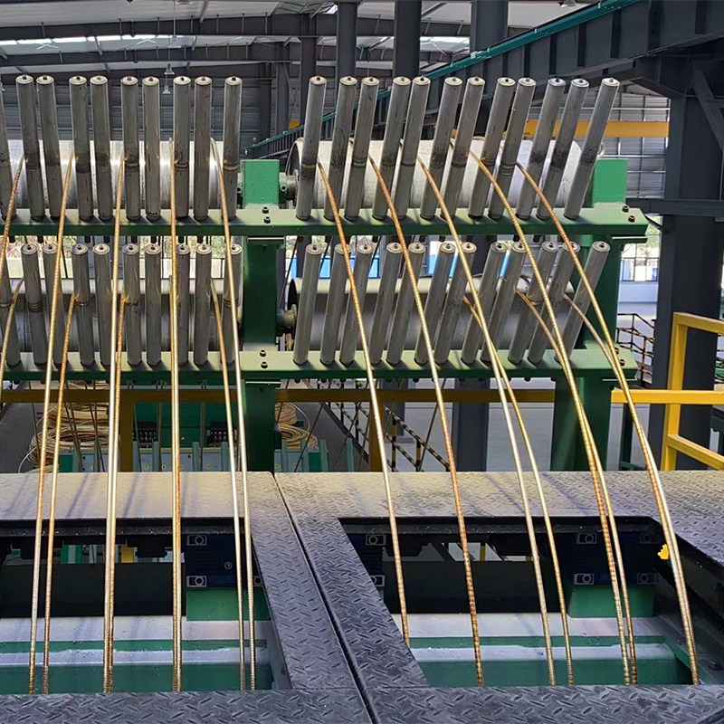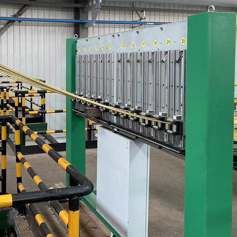 Поместите медный катод в печь с помощью подъемной системы для запекания → отрегулируйте скорость подачи в соответствии со скоростью литья. Подать медный катод в плавильную печь для плавления (уголь должен быть использован для предотвращения окисления) → медная жидкость течет в переходную часть (уголь все еще необходим для предотвращения окисления) → медная жидкость течет в печь удержания → медная жидкость течет в кристаллизатор для получения медных стержней → медные стержни входят в тяговое устройство для движения вверх → проходят через выходную раму → медные стержни проходят через распределительную раму (для разделения каждого стержня) → медные стержни проходят через натяжную раму (для контроля скорости взятия скорость подъема) → медные стержни проходят через машину подъема, для намотки → Следующий процесс