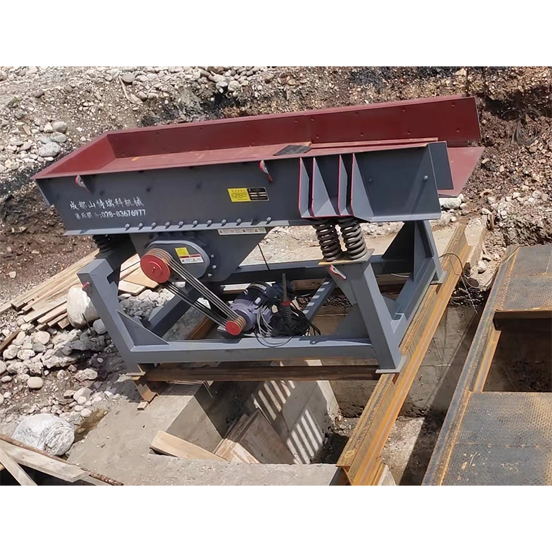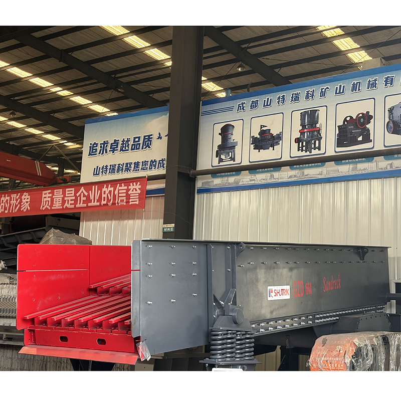 Вибрационный питатель Sandreck — это автоматическое оборудование для подачи. Двигатель приводит в движение ведущий вал через клиновой ремень, а затем приводит во вращение ведомый вал, зацепляющийся с шестерней на ведущем валу. Ведущий и ведомый валы вращаются в противоположных направлениях одновременно, заставляя желоб вибрировать, а материал течь непрерывно, тем самым достигая цели транспортировки материалов. Он может равномерно, регулярно и непрерывно подавать блочные и гранулированные материалы из бункера-накопителя в приемное устройство. В линии по производству песка и гравия он может непрерывно и равномерно подавать в дробилку и выполнять грубое просеивание материалов. Он широко используется в металлургии, угольной промышленности, переработке полезных ископаемых, производстве строительных материалов, химической промышленности и других отраслях.
