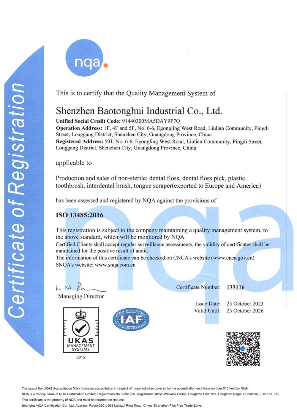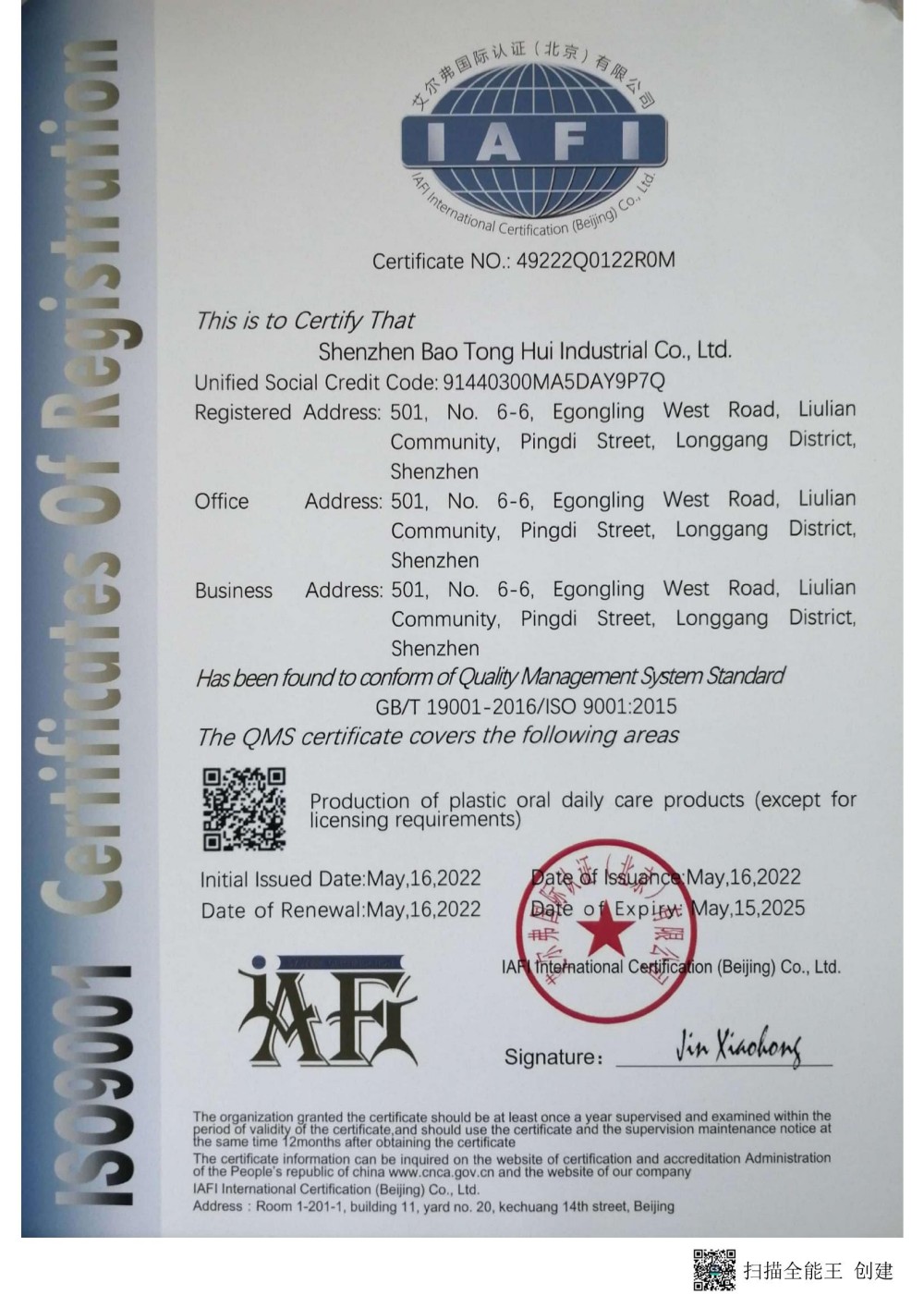 ISO 9001、ISO 13485、CE、RoHS、BSCI