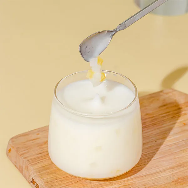 Отборное импортное сухое молоко из Новой Зеландии обеспечивает гладкую, насыщенную молочную основу. В сочетании с высококачественными кусочками фруктов из холодильной цепи, обеспечивается свежесть, хрусткость и сладость фруктов в каждом кусочке. Специальная формула с добавлением жевательной кокосовой стружки.