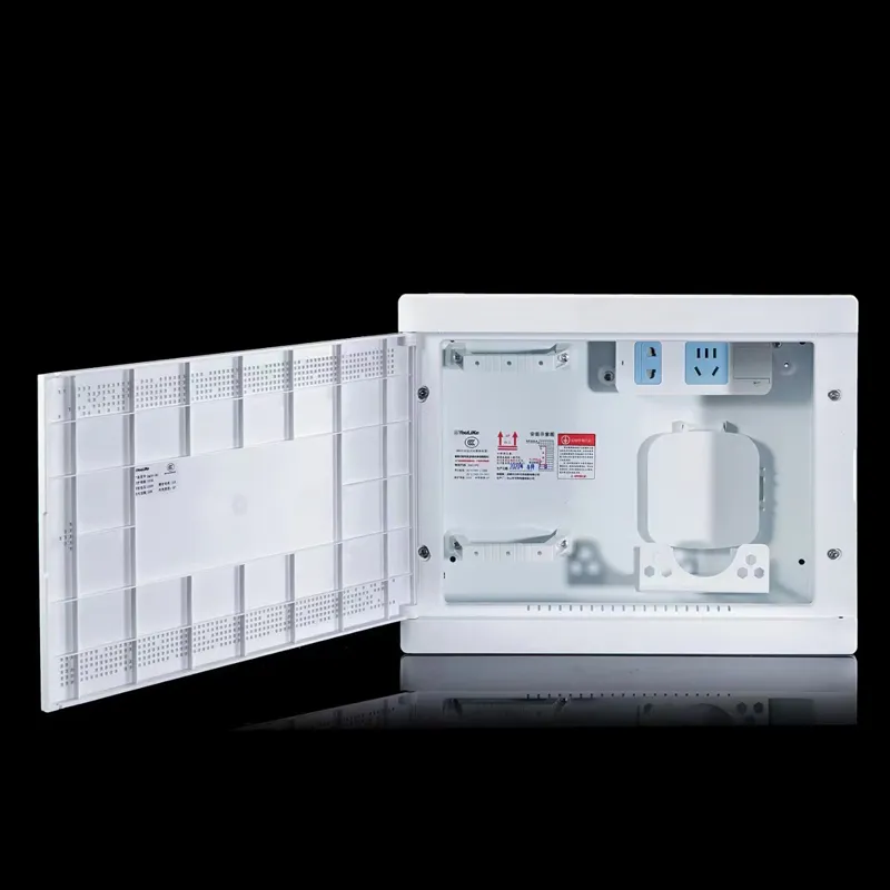 Корпус изготовлен из огнестойкого изоляционного материала, имеет элегантный внешний вид, гармонирующий с домашним интерьером, и сочетает противопожарные свойства с защитой от поражения электрическим током. Внутри предусмотрены монтажные места для нескольких автоматических выключателей, позволяющие гибко конфигурировать систему в зависимости от количества бытовых электроприборов (например, независимые цепи для освещения, розеток, кондиционеров и т.д.). Некоторые модели также оснащены встроенными монтажными зонами для розеток и слаботочных модулей, обеспечивая распределение силовой электропроводки и организацию слаботочных устройств.