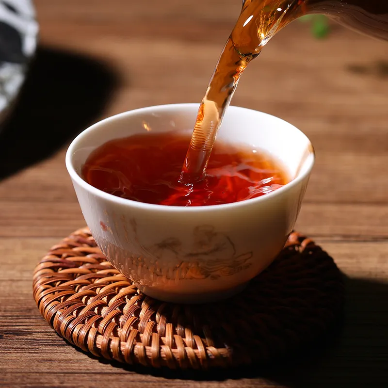 Продукт выбирает юньнаньский большой лист старого дерева брауншань, загорающего зеленый ранний весенний чай в качестве сырья, после умеренной кучи ферментации, сортировки сита, высокотемпературного парового давления. Клейкий аромат высокий чистый, чэнь юнь длинный, суп прозрачный, вкус мягкий, скользкий и сладкий, элегантный и мягкий. Устойчивый к пузырькам, более двадцати пузырьков все еще имеют остатки аромата. Его сексуальная мягкость, независимо от юга и севера, весна, лето, осень и зима все время подходят для питья. Хороший чай, крепкий, сплоченный это сущность чая пуэр.