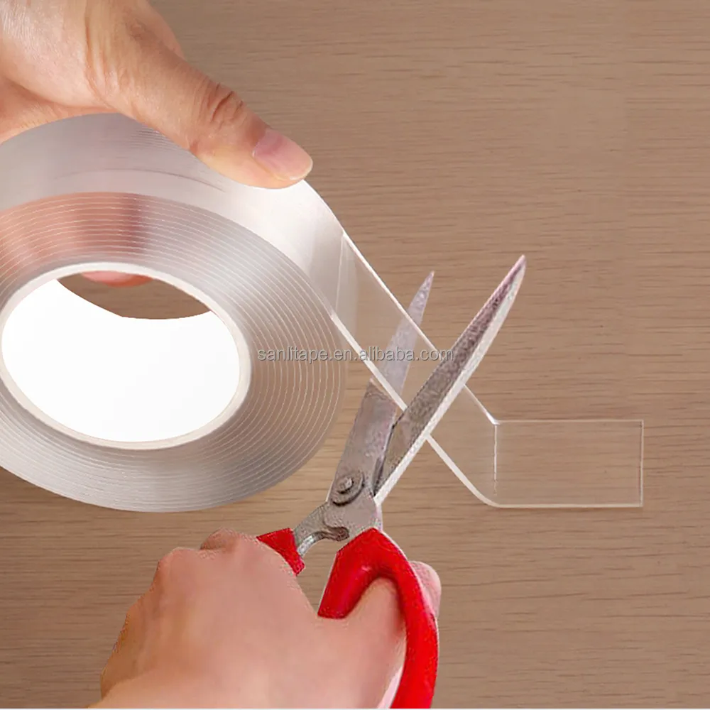 Нанолента изготовлена из акрилового клея, чувствительного к давлению, имеет прозрачный гелеобразный вид, высокую прозрачность, сильную адгезию и высокую эластичность. В ней используется передовая нанотехнология, обеспечивающая устойчивость к ультрафиолетовому излучению, химическую коррозионную стойкость (за исключением расплавленных щелочных металлов), высокую изоляцию и низкий коэффициент трения. Ее можно свободно резать по размеру и использовать для проектов «сделай сам». Она может заменить традиционные винты и заклепки, а ее клеевые свойства не повреждают поверхности. Эта прозрачная двусторонняя лента премиум-класса может быть вымыта и использована повторно десятки раз, не оставляя следов после удаления. Она особенно популярна для временных украшений или в условиях аренды.