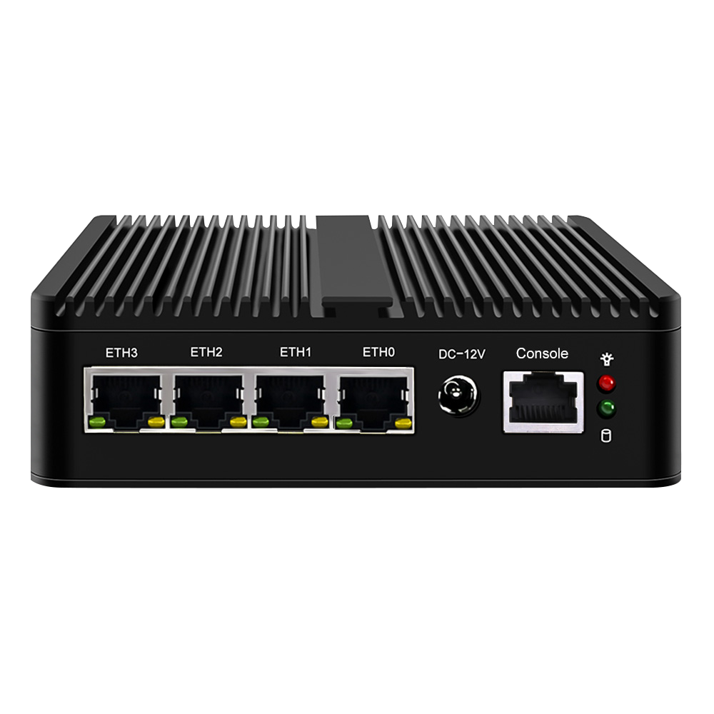 -4xIntel i226-V 2.5GbE RJ45 LANs, 2xUSB3.0, 2xUSB2.0, 1xRJ45 COM консоль, 1x4G/3G SIM слот.