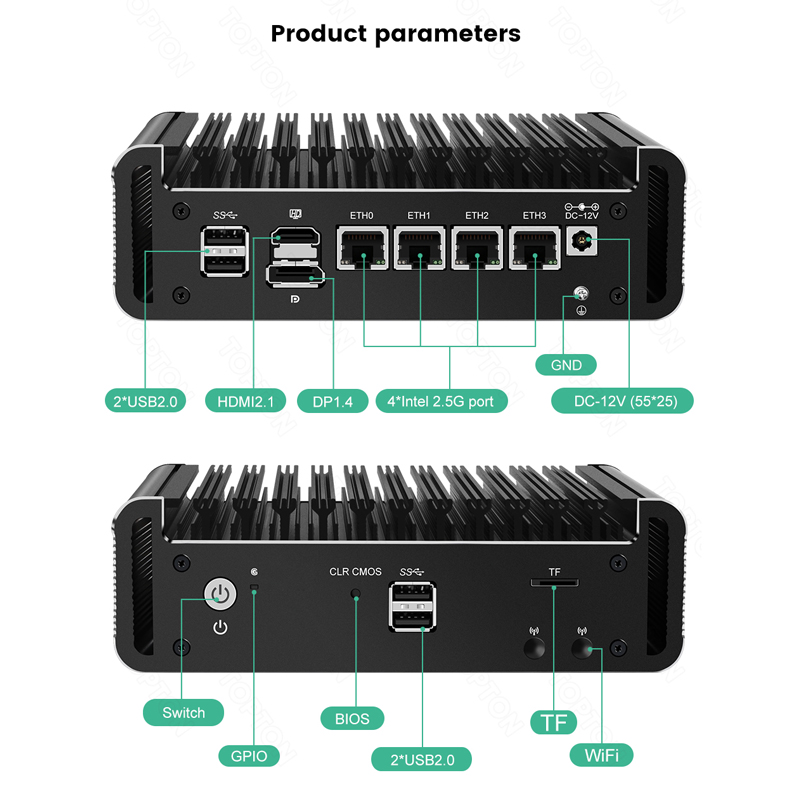 -4xIntel i226-V 2.5G UDE фильтр чистый RJ45 LANs, 2xUSB3.0, 6xUSB2.0.