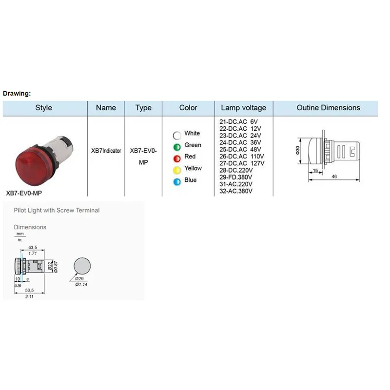XB7-EV0-MP - это водонепроницаемый и огнестойкий индикатор серии XB7.Это отличный продукт среди множества индикаторных ламп.