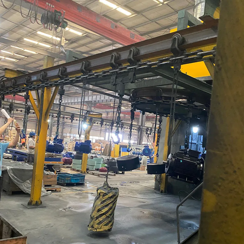 Обычный подвесной конвейер ХТ представляет собой оборудование для непрерывной транспортировки материалов в пространстве. Материалы размещаются в специальных контейнерах или на кронштейнах и перемещаются по заданной траектории. Линия может подниматься, опускаться и поворачивать в пространстве, обеспечивая свободную и гибкую компоновку, и занимает небольшую площадь. Применяется в отраслях, таких как машиностроение, автомобилестроение, электроника, бытовая техника, легкая промышленность, пищевая промышленность, химическая промышленность и других, при крупносерийном поточном производстве. В процессе транспортировки заготовок используется множественная точечная выдача в пространстве, а скорость транспортировки может регулироваться, что весьма благоприятно для операций, таких как механическая сборка. В настоящее время это широко используемое транспортное изделие на отечественных предприятиях.
