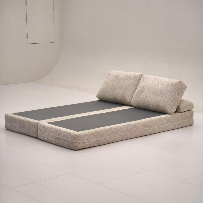 Этот модульный диван-кровать с кремовой текстурой ткани отличается как эстетичным внешним видом, так и практичностью. Он мягкий, воздушный и приятный на ощупь, подходит для оформления интерьера в кремовых и лаконичных тонах. Модульная конструкция гибкая и практичная: для ежедневного использования это двуспальный диван с мягкой эластичностью, прочной обивкой и стабильной поддержкой; после складывания и раскладывания он быстро превращается в большую кровать, что позволяет использовать его в гостевых спальнях и небольших квартирах в качестве многофункционального решения. Не требуется сложных операций для трансформации, например, для отдыха, сидения или кратковременного отдыха, это компактное и функциональное решение, сочетающее в себе два преимущества: внешний вид и функциональность.