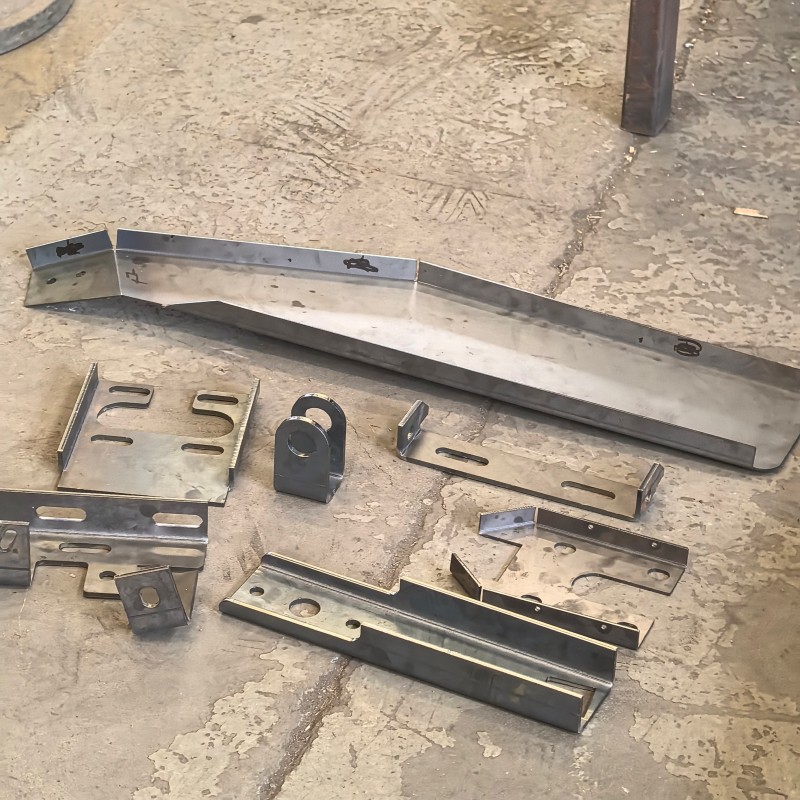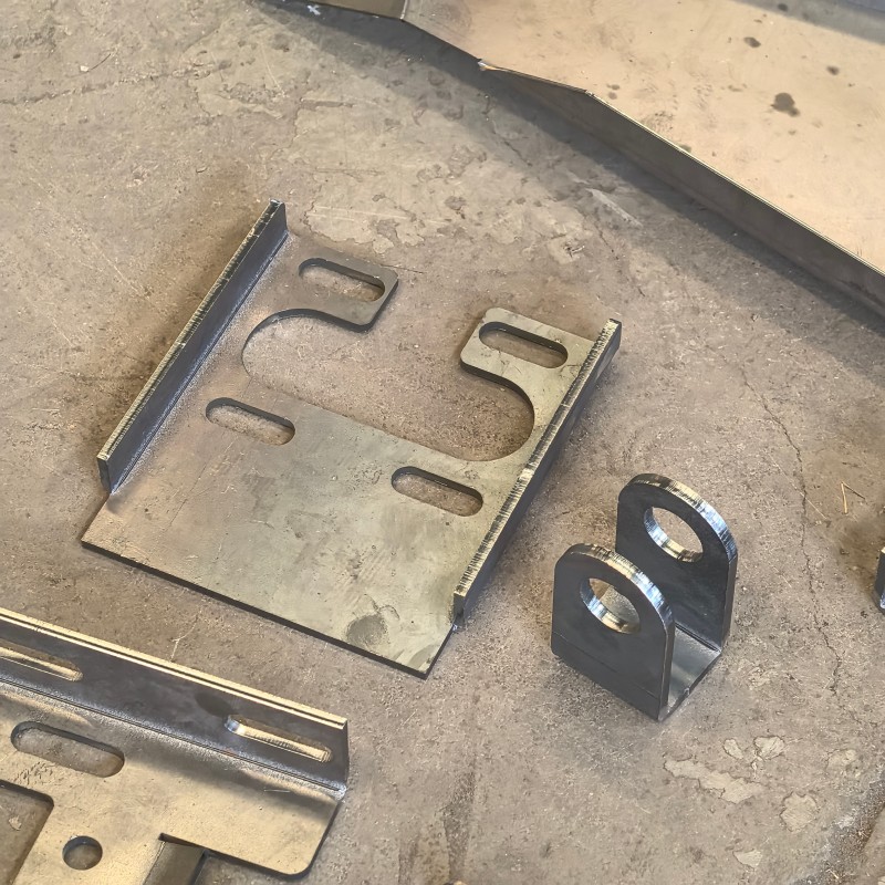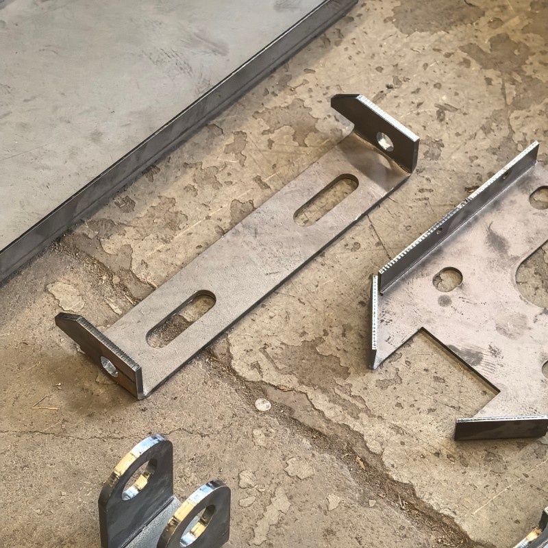 Основная рама изготовлена из углеродистой конструкционной стали Q235B и представляет собой сварную конструкцию из прямоугольных стальных труб диаметром 80×50×3 мм. Основные зоны нагрузки усилены стальными пластинами толщиной 10 мм. В качестве аксессуаров используются штампованные U-образные соединители толщиной 5 мм, круглые защитные ограждения трансмиссии диаметром 200 мм и L-образные кронштейны. Все детали не имеют покрытия, не окрашены и сохраняют свой естественный металлический цвет.