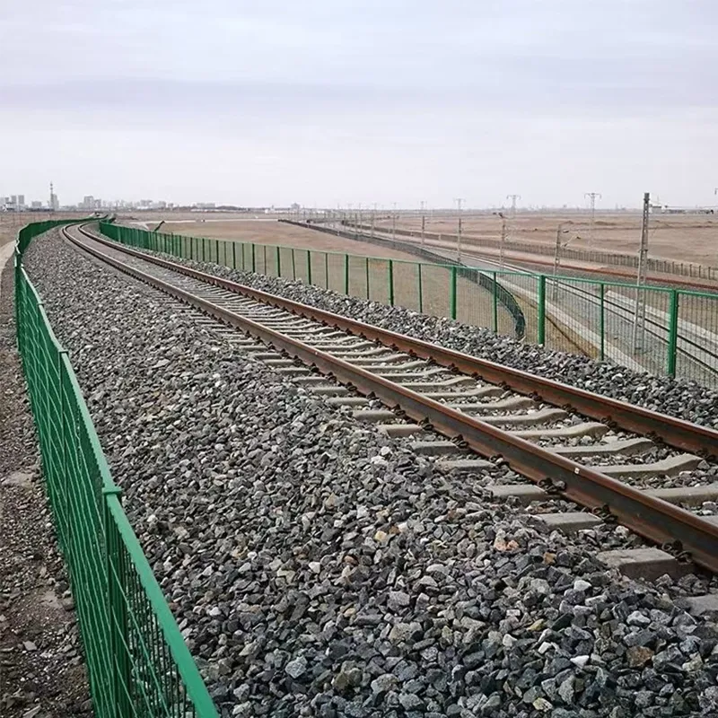 Железнодорожные защитные ограждения широко применяются вдоль линий обычной и высокоскоростной железной дороги, а также на станционных территориях, входах в тоннели и других критических участках, представляя собой специализированные защитные сооружения для обеспечения безопасности железнодорожных путей. Основная конструкция преимущественно изготавливается методом сварки или плетения из низкоуглеродистой стальной проволоки, оцинкованной или с полимерным покрытием, с креплением к бетонным или горячеоцинкованным металлическим стойкам по обеим сторонам железнодорожного полотна, при этом на отдельных участках дополнительно устанавливаются бетонные фундаменты или противоподкопные сетки в нижней части для обеспечения общей структурной прочности и ударной стойкости. Основное функциональное назначение заключается в обеспечении безопасности железнодорожного движения путем предотвращения несанкционированного проникновения людей, скота и не механизированных транспортных средств на железнодорожные пути, что исключает сбои движения поездов и аварийные столкновения, вызванные посторонними объектами, одновременно блокируя попадание щебня, растительности и мусора в зону путей для снижения воздействия на железнодорожное оборудование и уменьшения затрат на содержание инфраструктуры. Материалы подвергаются антикоррозионной обработке горячим цинкованием или полимерным покрытием, обеспечивая устойчивость к солнечному излучению, осадкам, перепадам температур и другим сложным внешним воздействиям, что гарантирует продолжительный срок службы.