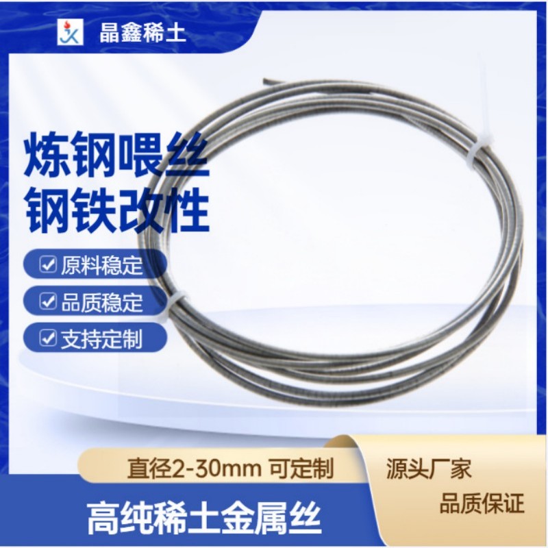 Проволока из редкоземельных металлов: применяется в методе подачи проволоки для добавления редкоземельных металлов, в сталь и сплавы, чтобы играть роль в рафинировании зерна, десульфуризации и раскислении.
