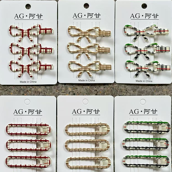 Дизайн: В основе дизайна лежит классический клетчатый принт, искусно сочетающий винтажные и современные мотивы. Цветовые решения разнообразны и гармоничны: от сдержанных комбинаций красного, зелёного и чёрного до ярких красно-белых контрастов и тёплых бежево-коричневых оттенков. Клетчатый узор выполнен с чёткими линиями и изысканной детализацией, придающей заколке особый визуальный шарм. В ассортименте представлены как лаконичные удлинённые модели, так и игривые варианты с бантами, удовлетворяющие различные эстетические предпочтения и потребности в создании причёсок.