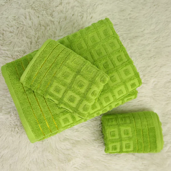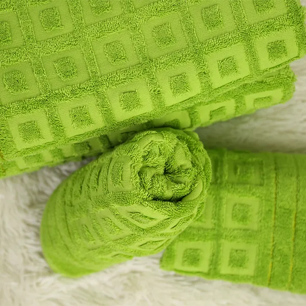 Зеленое махровое полотенце из жаккардовой ткани