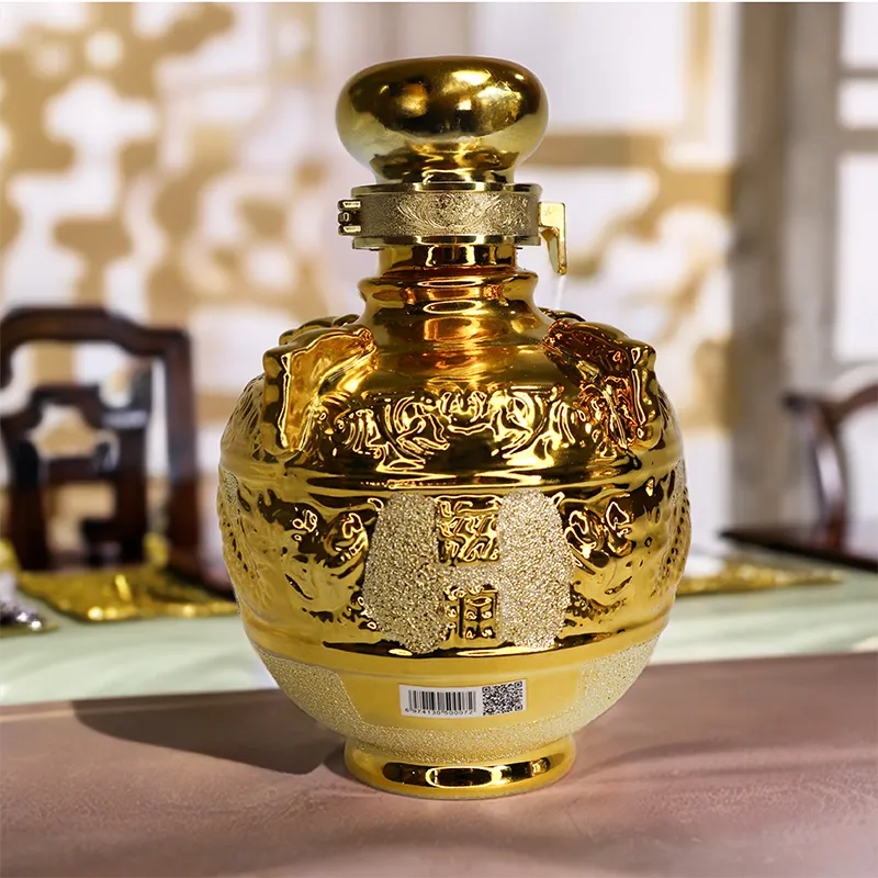 Бутыль золотистого цвета для ликера Цзыжунь выполнена в элегантном золотом оттенке, украшена тонкими текстурами и изысканными узорами, что подчеркивает благородство и утонченность, словно ценное произведение искусства, которое невозможно забыть с первого взгляда. Напиток прозрачен и чист, как горный источник, излучая насыщенный зерновой аромат и легкие цветочные и фруктовые ноты, которые чаруют своим запахом.