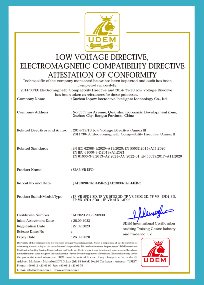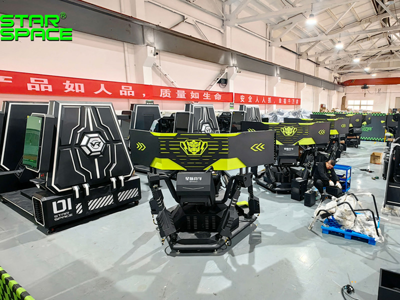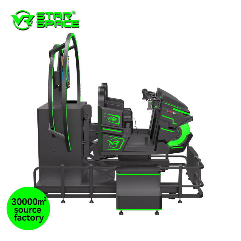 VR-симулятор езды - первый в отрасли двухместный крупномасштабный динамический VR аттракцион с отличными характеристиками: динамическая амплитуда увеличена в 3 раза, занимает всего 6,9 квадратных метров, эффективность пинга увеличена более чем в 1,5 раза; максимальный угол наклона вперед и назад 55°, максимальный угол поворота влево и вправо 60°, высота оборудования 0,7 метра над землей. Он может имитировать езду на высоте 10 000 метров, обеспечивая более высокую интерактивность, и имеет более 20 встроенных высококачественных игр, открывая бесконечное приключение для тех, кто испытает его. Оборудование состоит из очков виртуальной реальности, платформы для кинетических эффектов, 9D-фильма и платформы управления ПК, что позволяет зрителям получить сильнейшее ощущение реализма от слуха, зрения до осязания, как в кино. Благодаря моделированию окружающей среды оборудование может создавать интерактивные спецэффекты, такие как реактивная струя, дуновение ветра, взмахи ногами, раскачивание влево и вправо, наклоны вперед и назад и т.д., так что участник эксперимента может почувствовать всем телом и разумом падение, вибрацию, дуновение ветра, взмахи ногами и другие реалистичные новые ощущения, погрузиться в сцену и получить массу удовольствия.