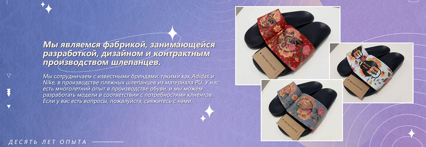 ООО Торговля в Город Путянь-Тайчене была основана в 2019 году, а принадлежащий ей завод по производству обувных материалов Чжи Бин с 2015 года занимается контрактным производством обуви под лицензированные бренды. Это специализированная фабрика, производящая спортивную обувь и шлепанцы. Клиенты на первом месте: Как торговая компания, мы придаем большое значение потребностям клиентов и стремимся предоставлять высококачественные продукты и услуги, чтобы удовлетворить разнообразные запросы клиентов и установить долгосрочные стабильные партнерские отношения.