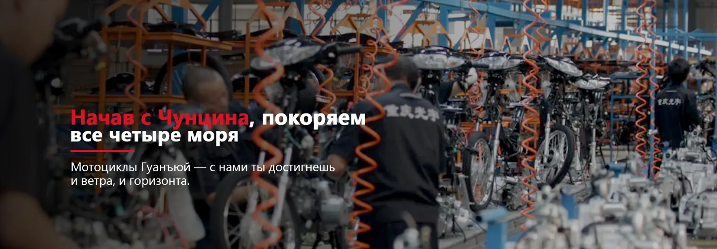 ООО Чунцин Гуанъюй Производство Мотоциклов, расположенное в районе Банань города Чунцин, является предприятием, аккредитованным Министерством промышленности и информатизации КНР, которое интегрирует проектирование продукции, производство и международную торговлю различными типами мотоциклов, мотоциклетной техники и запасных частей.