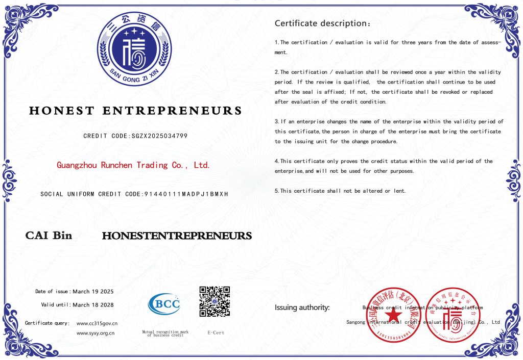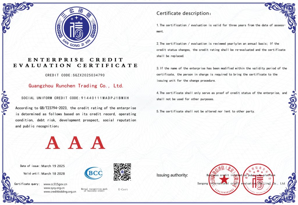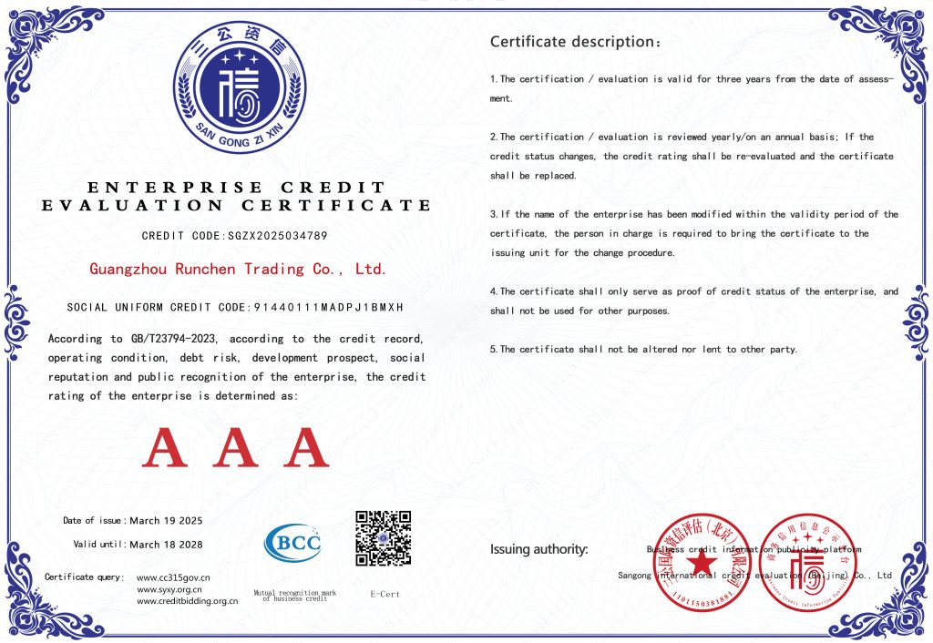 ООО Гуанчжоу Жуньчэнь Коммерция является комплексным предприятием бизнес-услуг, развивающимся на фоне глобальной экономической интеграции. С момента своего основания компания всегда фокусировалась на управлении цепочками поставок и оптимизации услуг, и стремится предоставлять клиентам эффективные и высококачественные бизнес-услуги.